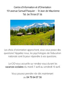 Ouverture du CIO durant les vacances scolaires - avril 2026