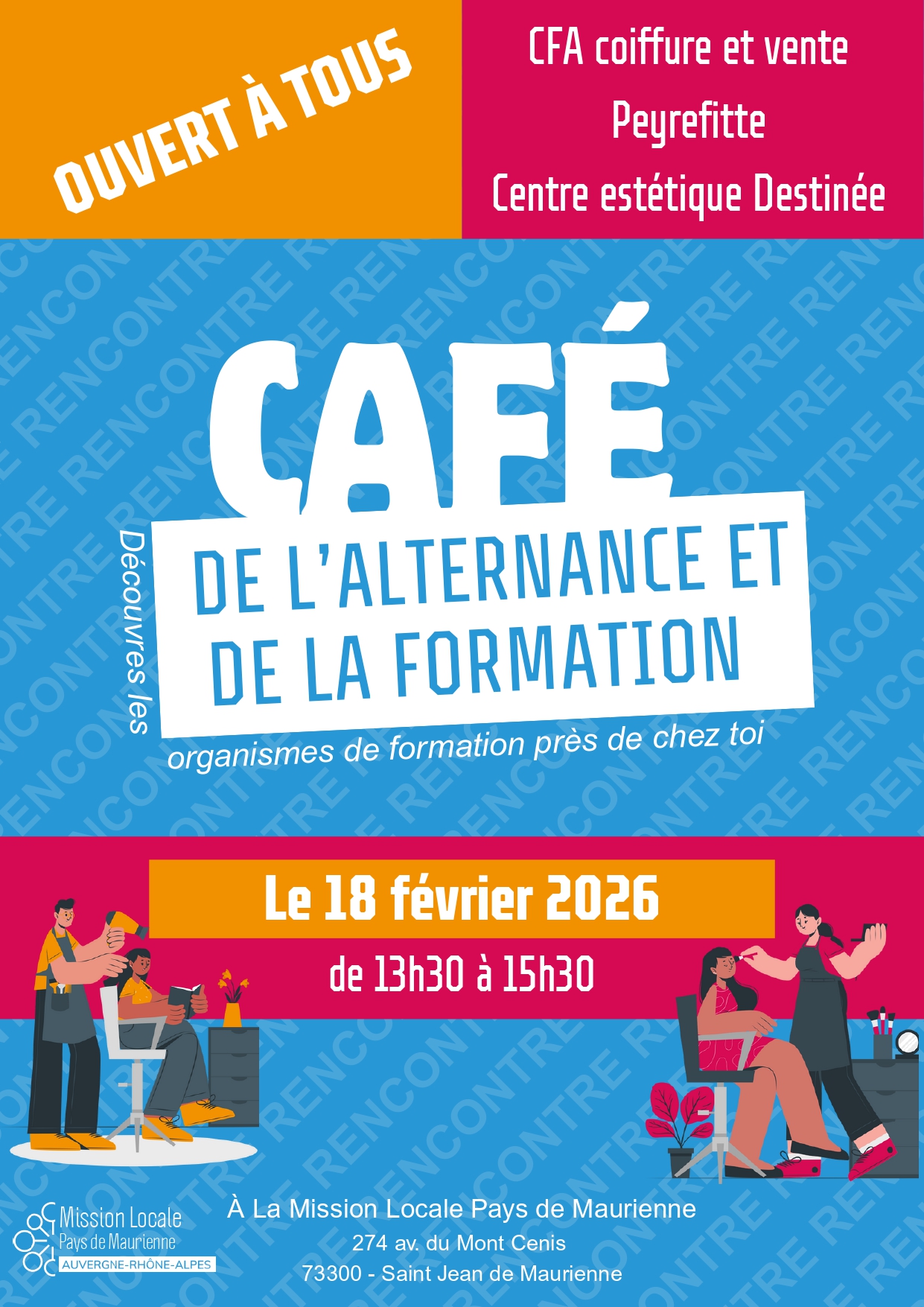 Dans ce cadre, la Mission Locale Pays de Maurienne organise un CafĂ© de lâalternance et de la formation, un temps privilĂ©giĂ© pour dĂ©couvrir les mĂ©tiers de lâesthĂ©tique et de la coiffure, poser vos questions et vous informer sur les parcours de formation et lâalternance.