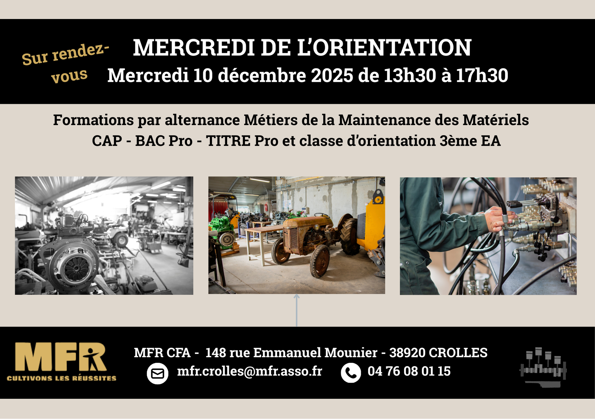 La MFR de Crolles organise une journée porte ouverte le mercredi 10 décembre de 13h30 à 17h30.