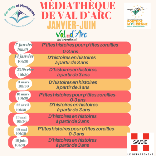Animations de Janvier médiathèque Val d'Arc - réseau "Par mots et montagnes"